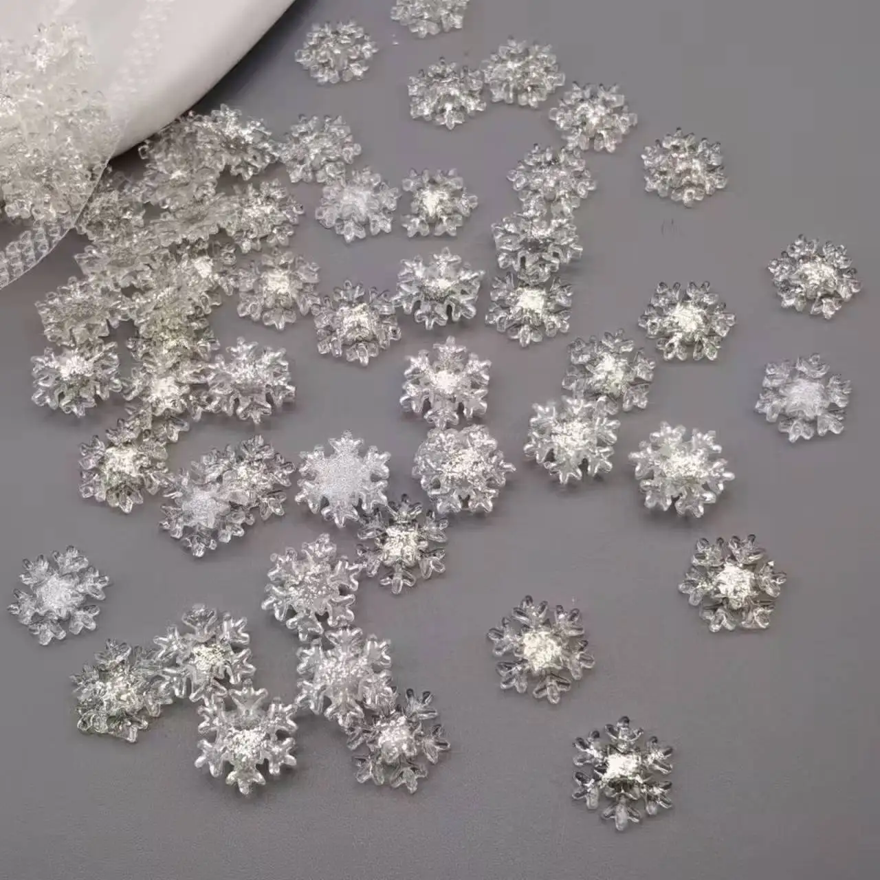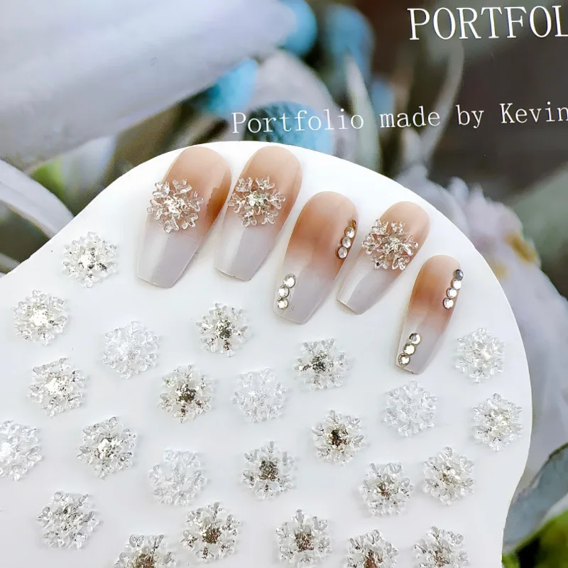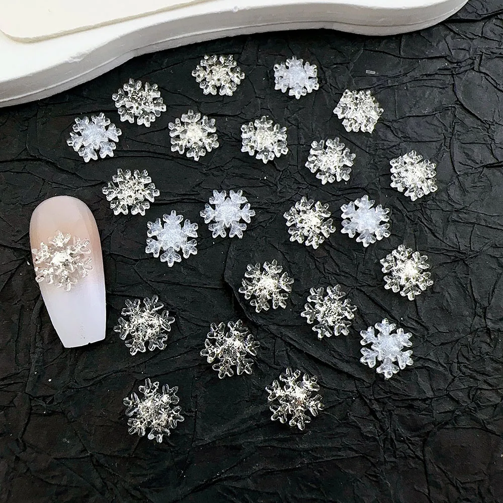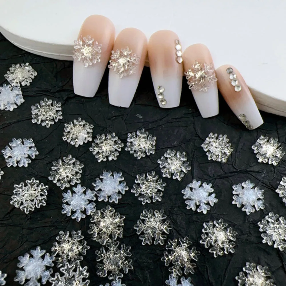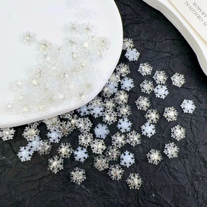 50pcs Christmas Sparkling White Snowflake Nail Charms Accessories Glitter Resin Snow Nail Decoration for Manicure DIY Parts